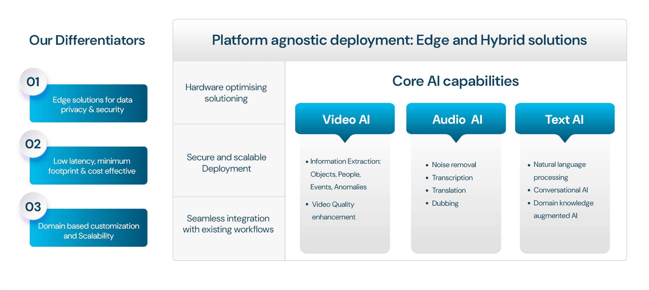 Designed for low-latency, high-efficiency performance, our stack combines advanced deep learning, edge-optimized model compression, and multi-modal processing. It enables AI to operate seamlessly without cloud dependence, even in constrained environments.
